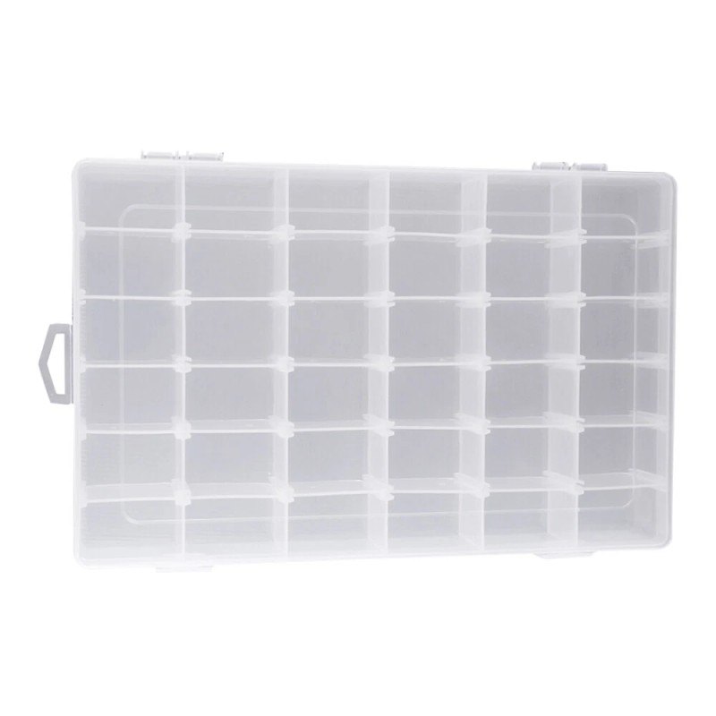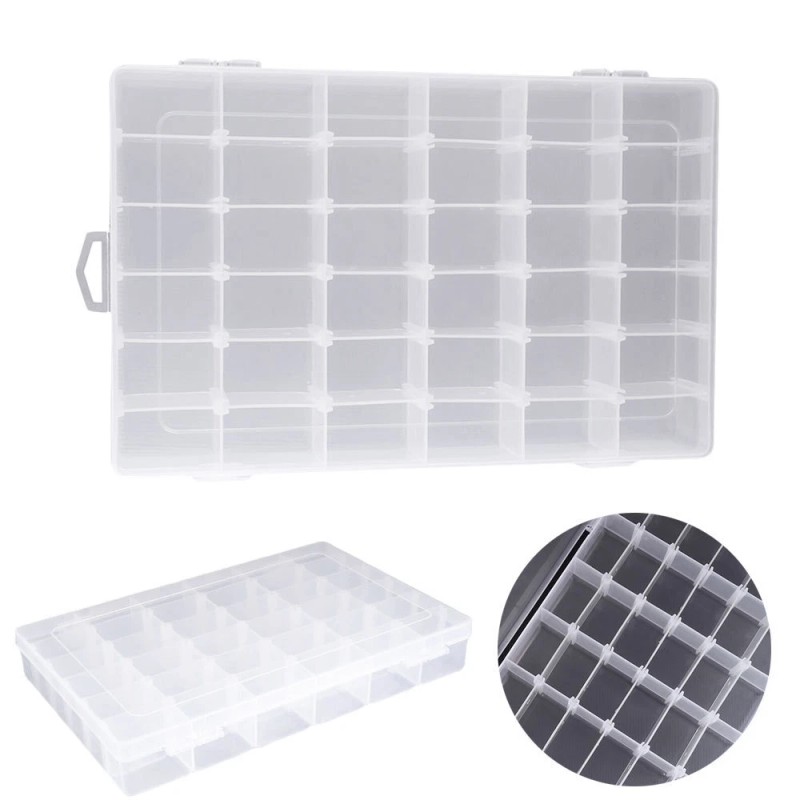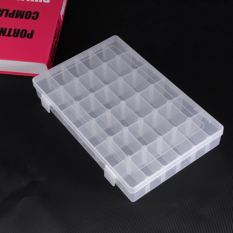 - 36 grids clear hard plastic storage box organizer, simple and practical.