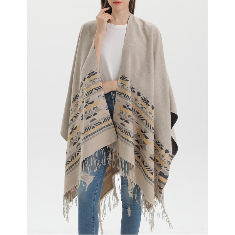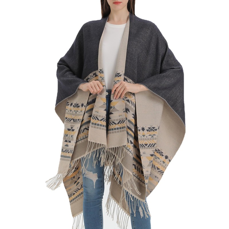 - Womens double sided poncho shawl, perfect choice for your daily wear, outdoor, casual wear and any other occasions in fall winter