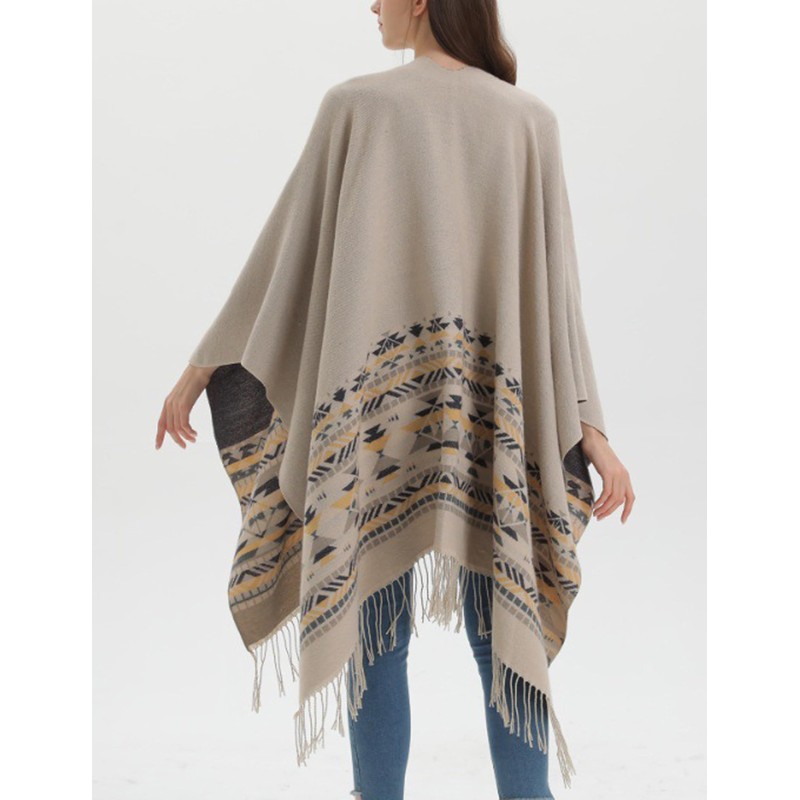 Oulivey Shawl Wraps for Women Oversized Open Front Poncho Cape Sweaters Casual Fall Winter Cardigan Shawl(0264-ApricotTassel-OneSize)