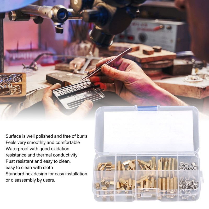- 【MATERIAL DE LATÓN】: este kit de separadores de tornillos está hecho de material de latón de primera calidad, estas herramientas tienen resistencia a la oxidación y conductividad térmica de primera calidad y son resistentes a la oxidación y fáciles de limpiar.