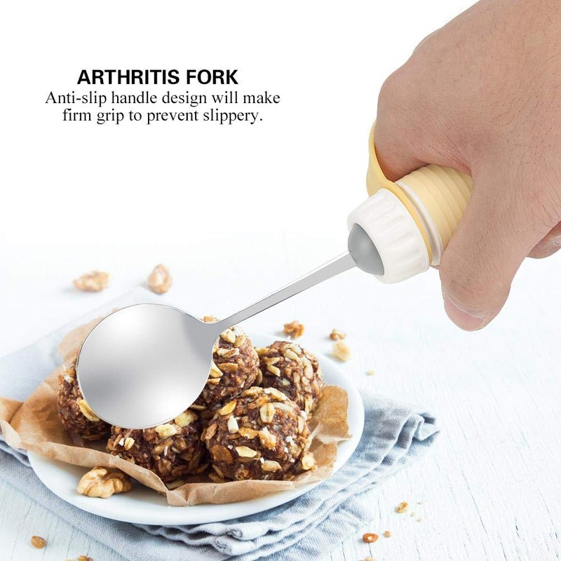 Oumefar Easy Grip Eating Aids Spoon, Disabled Utensil Stainless Steel Fork Arthritis Elder Aid Tablewares Flexible Rotating Fork Eating Tablewares for Disabled Patient Elder Handicapped