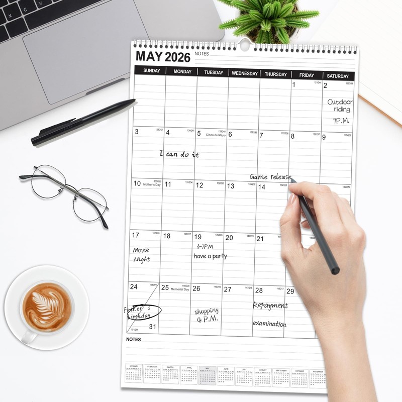 Easy-to-Read Monthly Layout – Designed with clear and bold typography, this vertical wall calendar offers excellent readability from a distance. The clean layout ensures that dates, notes, and holidays are easy to locate at a glance, making it a practical choice for busy individuals.<br></br>
