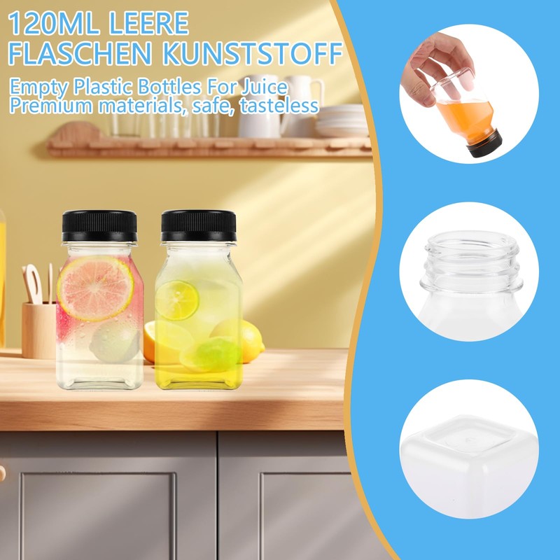 - Premium materials: made of high-quality plastic materials, this small bottles 120 ml bottle ensures durability and long-lasting use, is reusable and safe for all your drink needs. Your indispensable small bottles for filling for every household