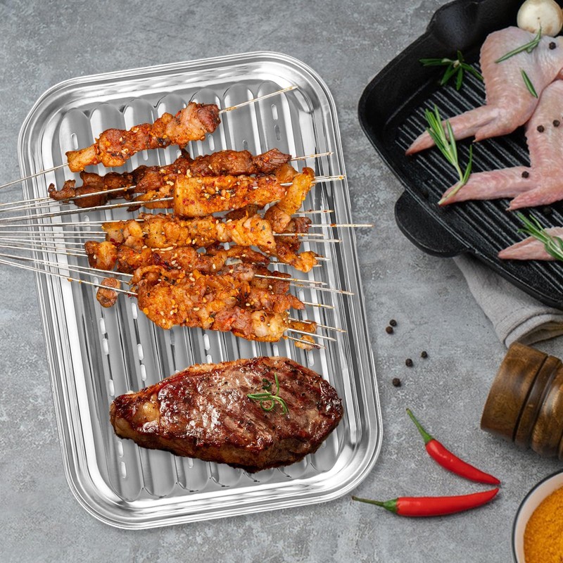 1. The stainless steel perforated grill tray is lightweight and portable, easy to carry and store, making it an ideal companion for outdoor barbecuing.