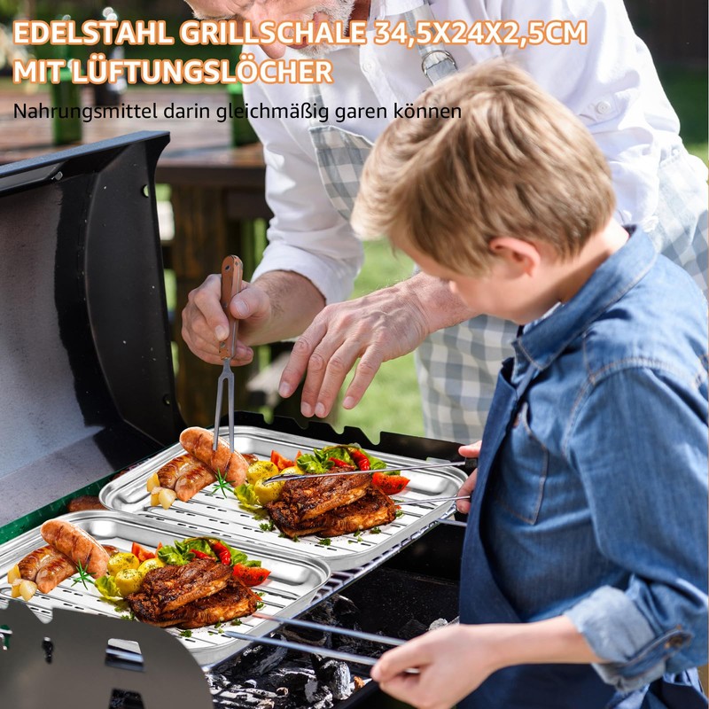 - Versatile use: our stainless steel grill bowl set can be used for all your favourite dishes made of incense. From delicious meat to fresh vegetables, it is the perfect accessory for any barbecue party. You can use our stainless steel grill pan for gas, electric and charcoal barbecues