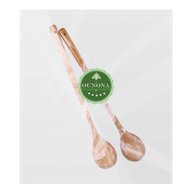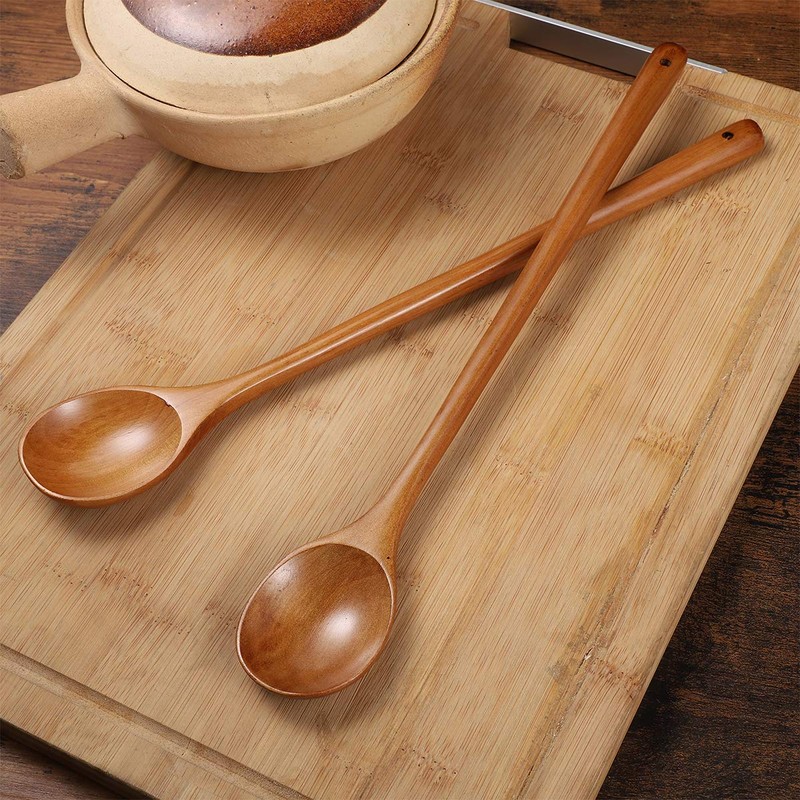 OUNONA Wooden Long Handle High Heat Resistant Cooking Spoons Mixing Spoons Handmade Cookware Kitchen Restaurant Pack of 2