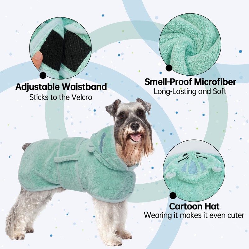 - The microfibre dog coat is made of high-quality ultra-fine fibre materials that ensure maximum water absorption and quick drying and keep pets warm, dry and comfortable after bathing, swimming or walking in the rain. Dog bathrobes effectively save time for furry friends to dry after bathing, swimming or hiking on rainy days.