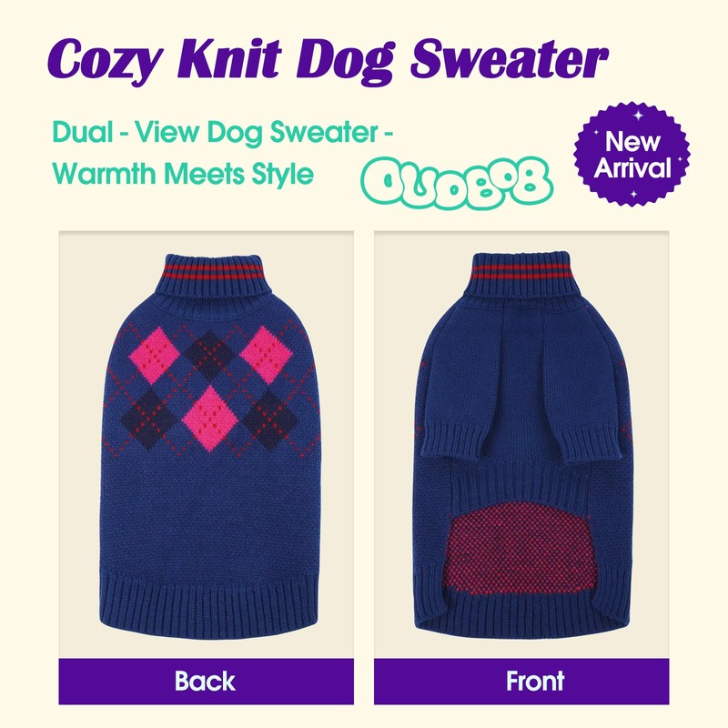 - WARM DOUBLE-LAYERED BACK WITH ARGYLE PATTERN - Two-tone knitting on the blue adds warmth and a classic pink-black argyle pattern for a standout look. The blue base makes it easy to match with any fur color. Ideal as a dog valentines outfit, dog thanksgiving outfit, dog presents for christmas, perfect for holiday photoshoots and cozy nights