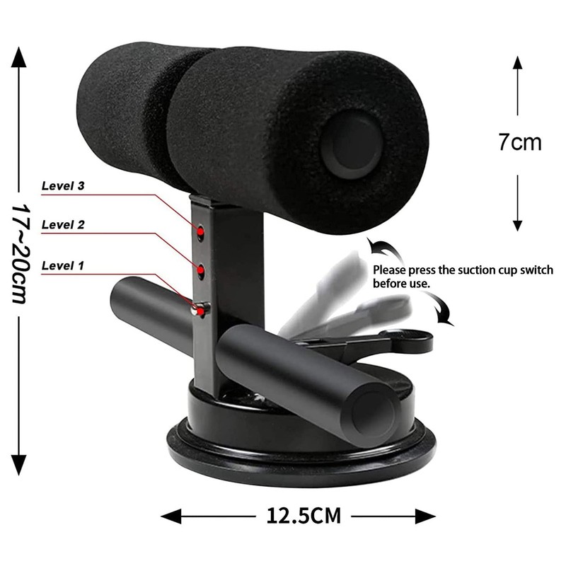 - Strong suction power: self-suction sit up bar has a strong suction power and does not loosen. The strong suction cup can be firmly attached to the floor. After wiping the floor with a damp cloth, the suction power can be further improved. Please remember to press the switch to attach the suction cup before use