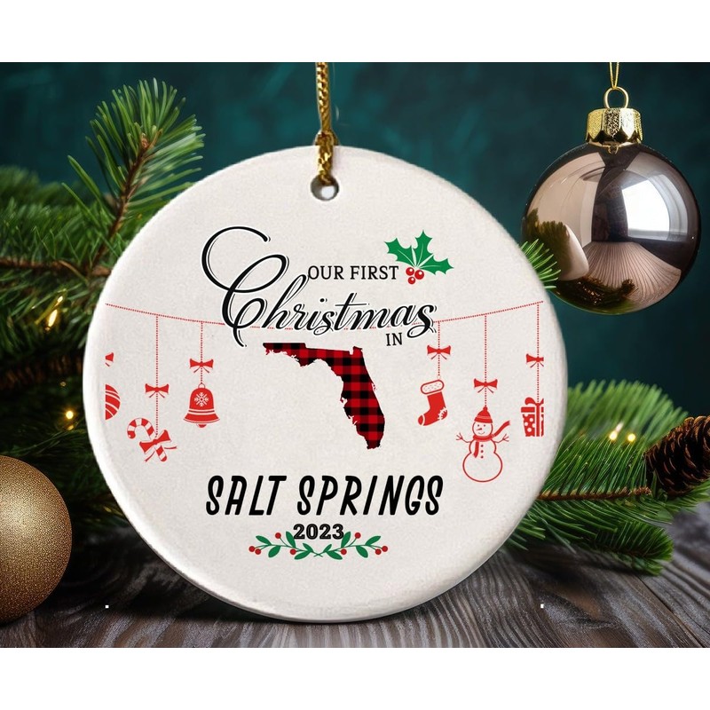 Our First Christmas Ornament 2024 in Salt Springs Florida Ornament Tree Decorations Housewarming New Home Keepsake 3" White