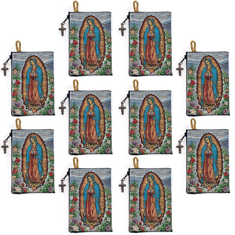 Bulk Set of 10 Catholic Coin Purses, Our Lady of Guadalupe & Cross with Flowers