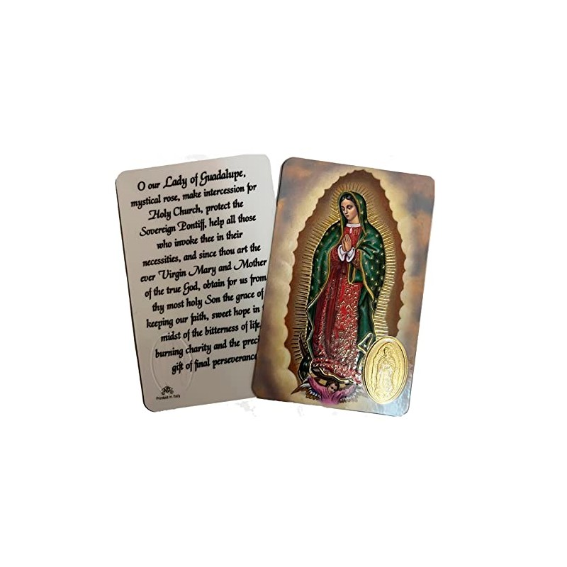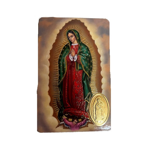 Our Lady of Guadalupe Holy Card with Medal and Prayer on Back (5-Pack)