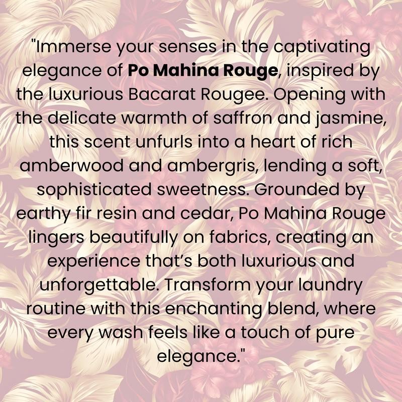 Po Mahina Rouge – Elegant and refined, this ultra-concentrated fragrance blends soft florals and warm spices, wrapping your clothes, linens, and car in an irresistible, organic luxury. Po Mahina Rouge elevates everyday moments with a sophisticated, long-lasting aroma.