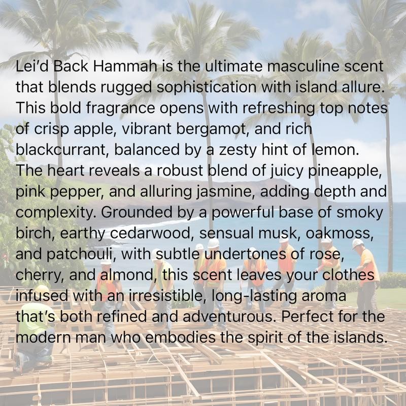 Lei’d Back Hammah – A strong, masculine blend that combines fresh apple, bergamot, and pineapple with the grounding notes of cedarwood, oakmoss, and musk. It’s a bold, long-lasting scent with a tropical twist that brings a cool, confident vibe to every wash.