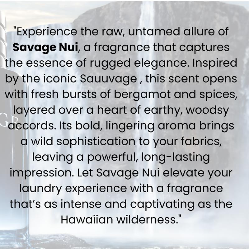 Savage Nui – A bold, magnetic scent that’s ultra-concentrated for lasting freshness. With zesty citrus, spicy pepper, and earthy herbs, Savage Nui is a high-scented powerhouse, perfect for those who crave a rugged, organic twist in every wash, spray, or car diffuser.