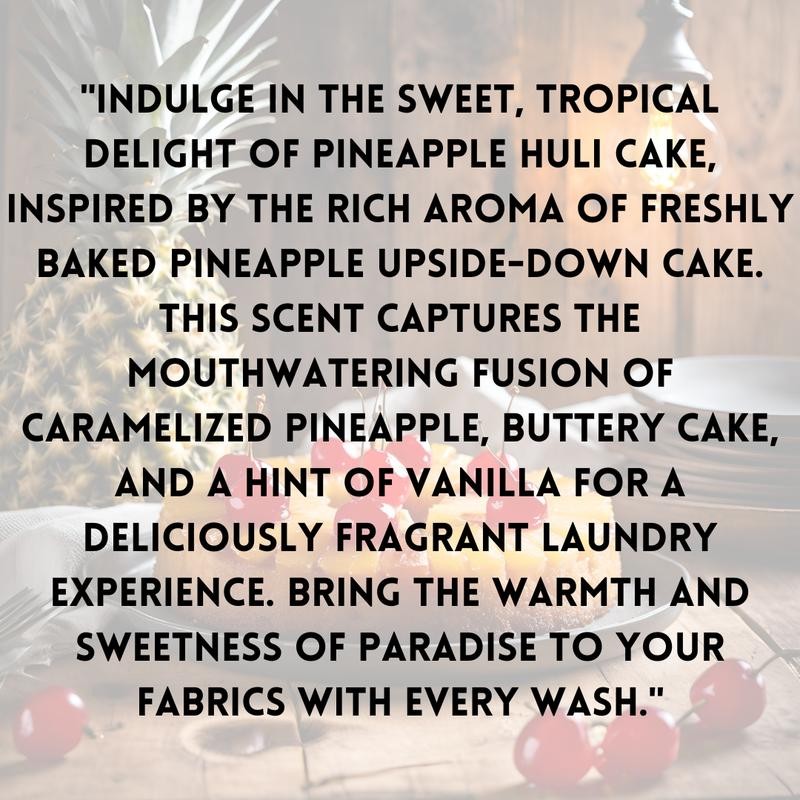 Pineapple Huli Cake – Indulge in the delicious, high-scented aroma of this ultra-concentrated, organic blend inspired by pineapple upside-down cake. Perfect for adding a warm, tropical sweetness to your laundry, home, and car, Pineapple Huli Cake is a treat for all the senses.
