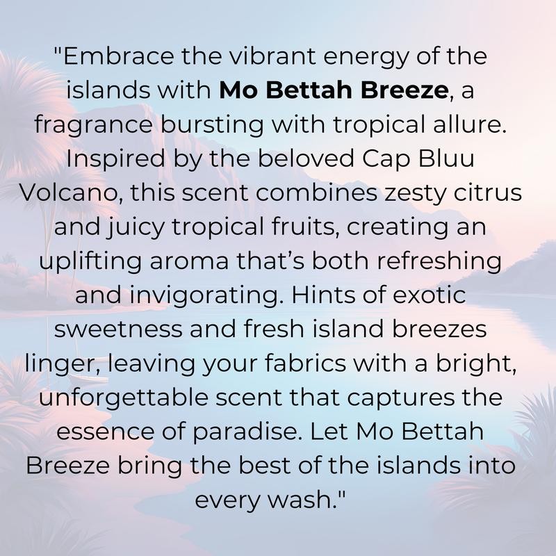 Mo Bettah Breeze – A vibrant mix of crisp apple, fresh greens, and floral notes, Mo Bettah Breeze is ultra-concentrated to deliver an energizing, high-scent experience that keeps laundry, linens, and car spaces fresh and full of life.