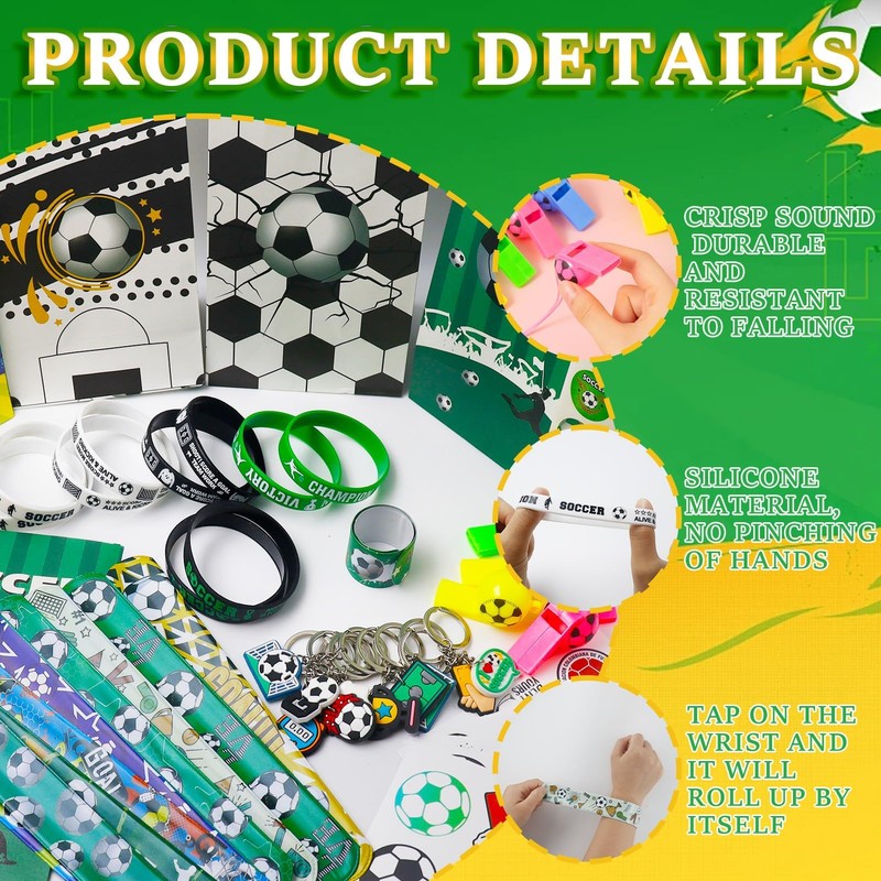 - High Quality Material The football wristband is made of elastic silicone material, comfortable to wear. The keychain is made of PVC, sturdy and durable. Children's temporary tattoo stickers are printed with environmentally friendly ink, clear patterns