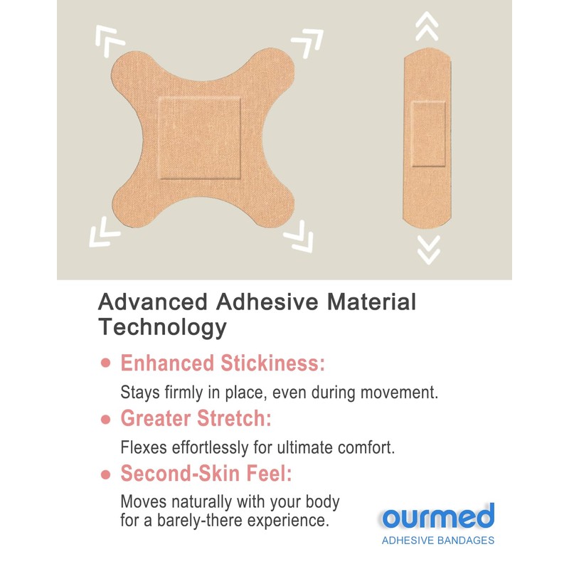 - Non-Natural Latex Hypoallergenic: Ourmed fabric flexible bandage is great for sensitive skin and peel off without any damaging the skin, allowing for painless removal