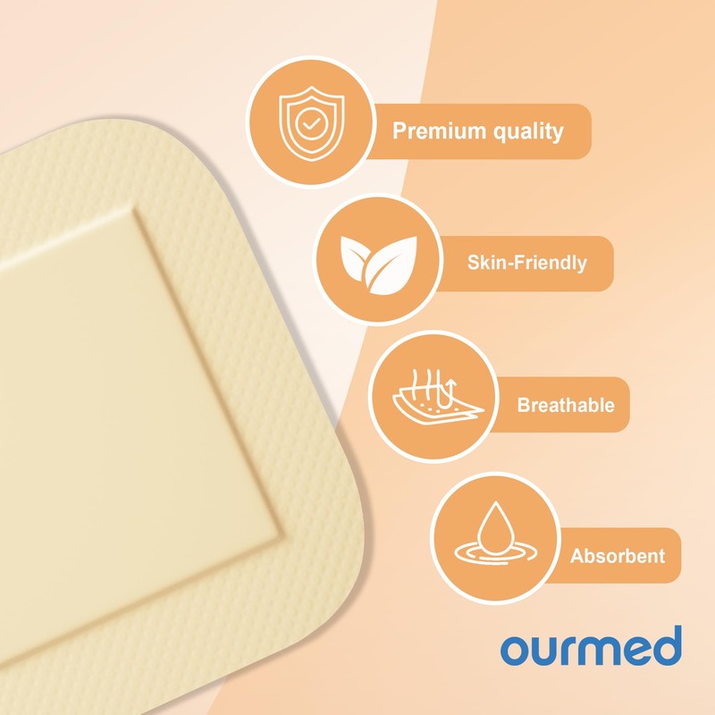 Ourmed Silicone Foam Dressings(4"x 4" - 20 Packs) with Tender Adhesive Border, Sterile Advanced Absorbent Bandage, Wound Care for Bed Sores, Pressure Ulcers, Foot Diabetic Ulcer, FSA HSA Eligible