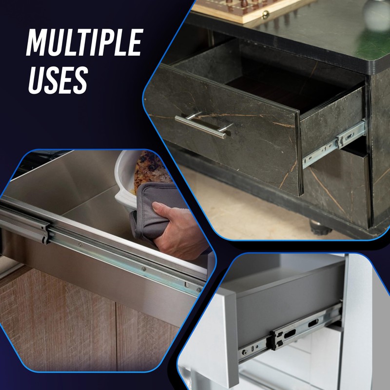 - [Universal Compatibility] Our full extension drawer slides are designed for universal compatibility, they can be easily installed in various types of cabinets, furniture pieces, and even custom-built projects. Whether you're upgrading existing furniture or embarking on a new DIY endeavor, these drawer slides are versatile enough to meet your needs