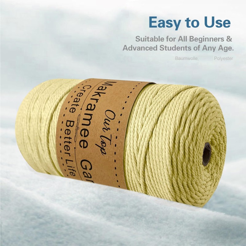 - Easy Handling: Our macrame cord is a single continuous thread, which avoids the dilemma of broken threads or threads that are too short in manual production. The macrame rope is twisted into a single unit using first-class specialized technology. Suitable for all macramé beginners & advanced users of all ages