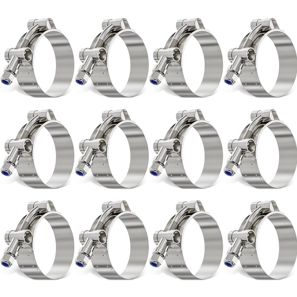 OURU 12Pack 1.25 Inch T Bolt Hose Clamp,304 Stainless Steel Heavy Duty Hose Clamp,Adjustable 41-46mm Radiator Hose Clamps for Tube, Automotive, Radiator, lntercooler