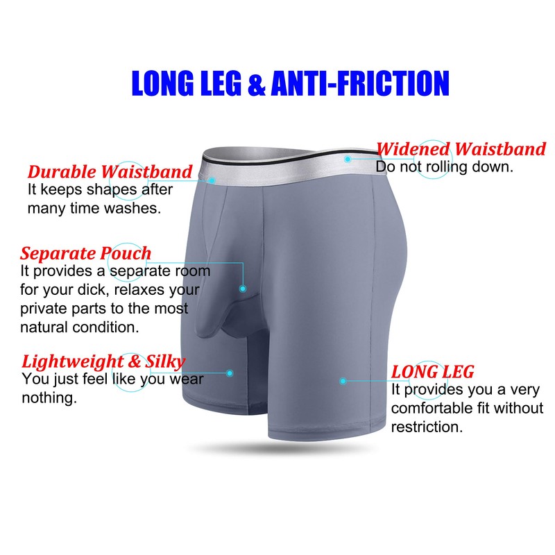 - Long leg and anti-friction: Inside leg approx. 6"-7" The active fit allows these long sports boxer shorts greater freedom of movement during high-energy activities. It offers you a very comfortable fit without restriction, which means these long sports boxer shorts are hard to ride.