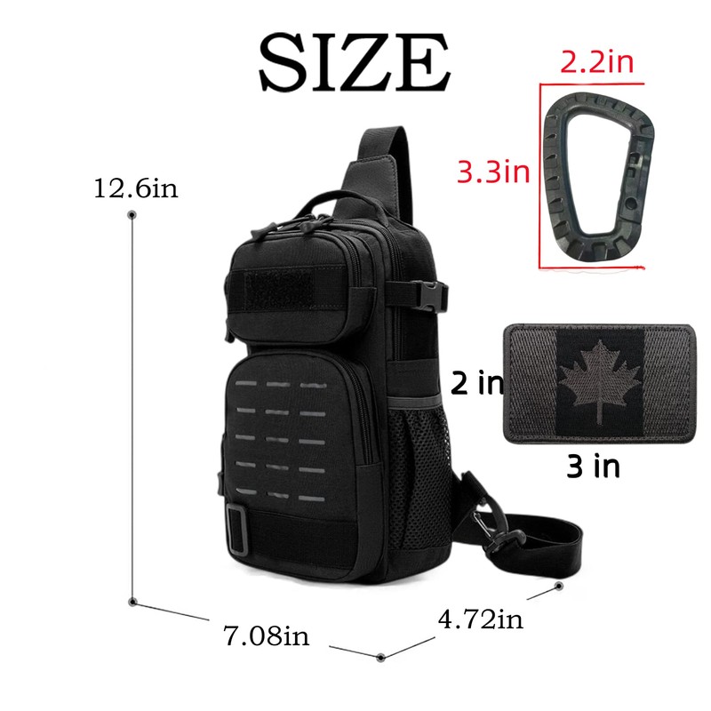 - Lightweight Tactical Bag: 7.08*4.72*12.6in (L*W*H), weight is 0.88lb, tactical sling bag made of high quality and durable Oxford cloth, water-repellent and wear-resistant