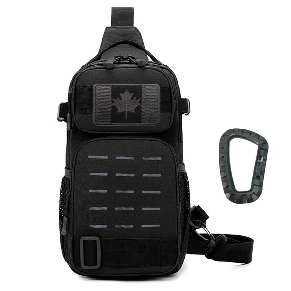 - Detachable Shoulder Strap: The shoulder strap of chest bag is freely removable, flexible buckle closure, alternate left and right carrying backpack, shoulder chest bag with Velcro and molle system design, this shoulder bag has a carabiner to hang water glasses, keys, hand lights, etc.