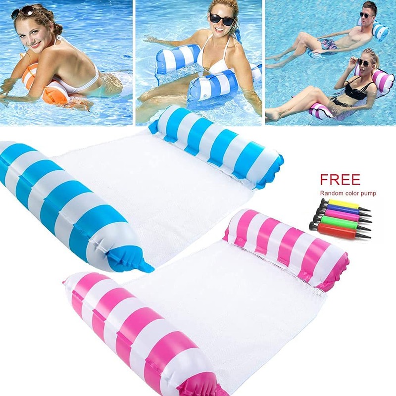 - 🌊【4 In 1 Water Hammock】A unique 4-in-1 multi-purpose water hammock , which can be used as a floating hammock, leisure chair, drifter and sports saddle. This is a perfect object floating on the water, you can freely change your posture on the water hammock, entertain and relax in the swimming pool.