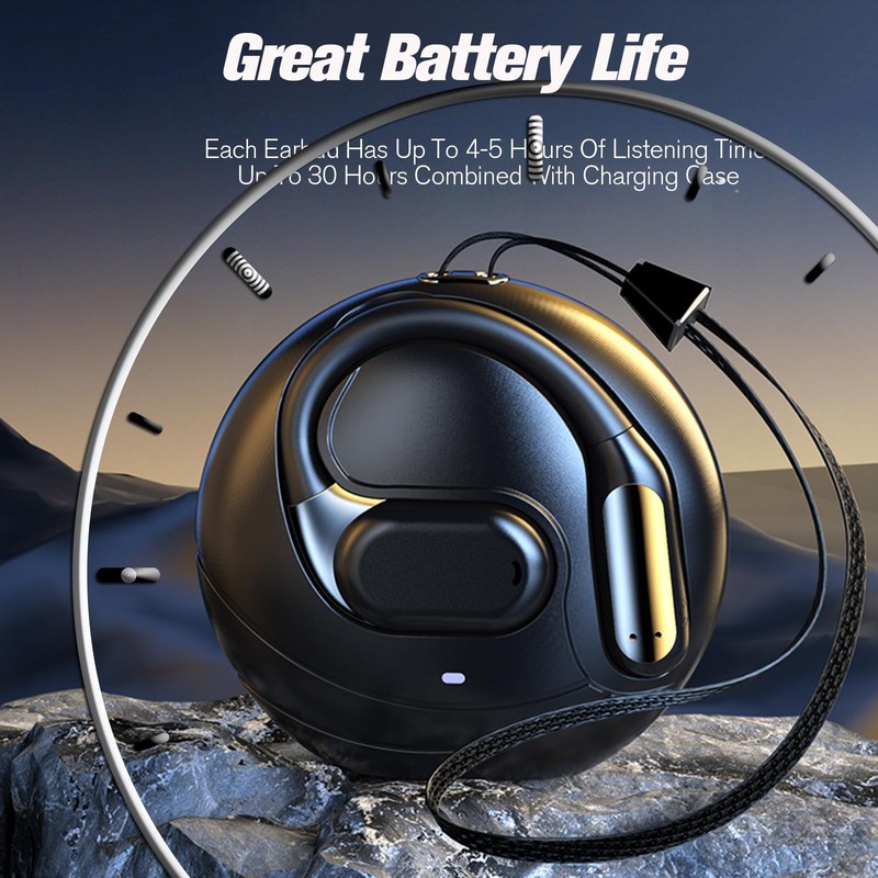 • 🎧《 5-6(30-35) Hours Play 》 Wireless open earbuds open ear Bone air conduction headphones USB charging and include 400mAh battery, enjoy 5-6(30-35) hours of non-stop music or podcasts,bluetooth headphones open ear outside the ear headphones open ear with mic Built-in microphone achieves clearer phone call.
