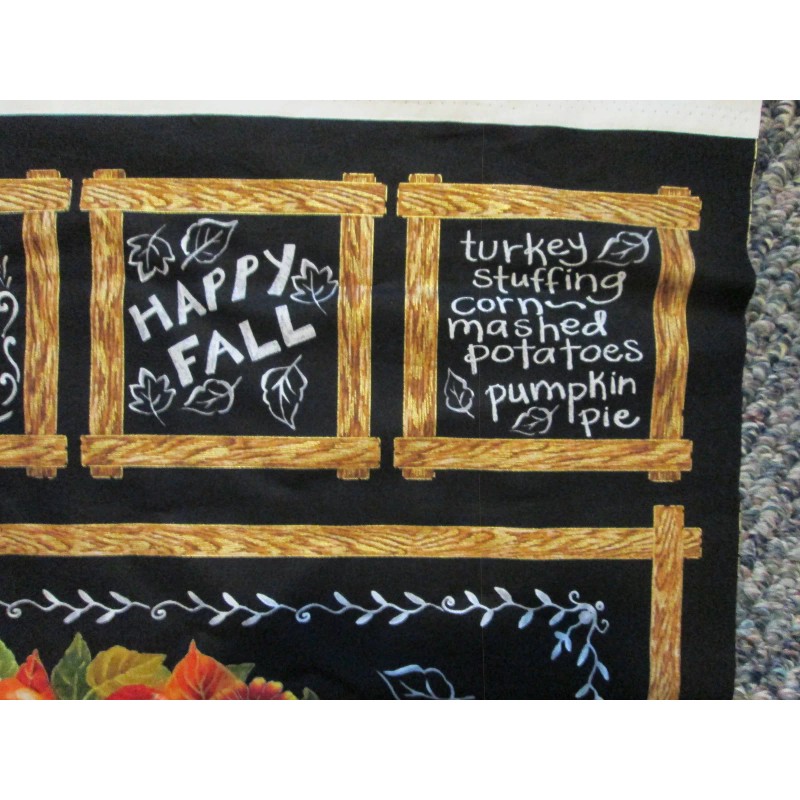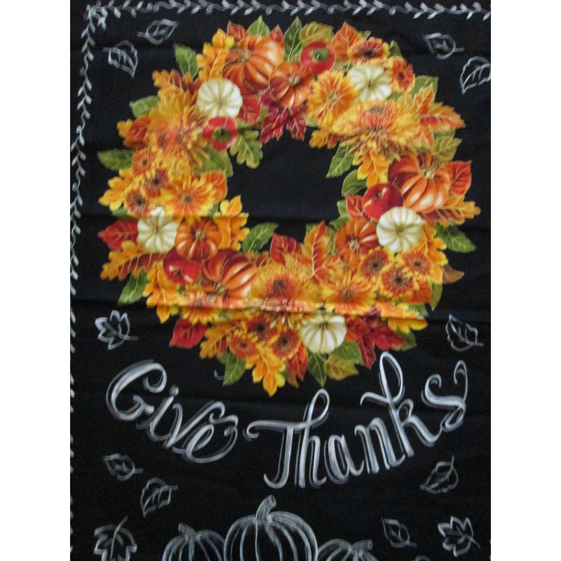Out of Print SUNFLOWERS WREATH PUMPKINS HOME METALLIC FALL GIVE THANKS COTTON FABRIC PANEL