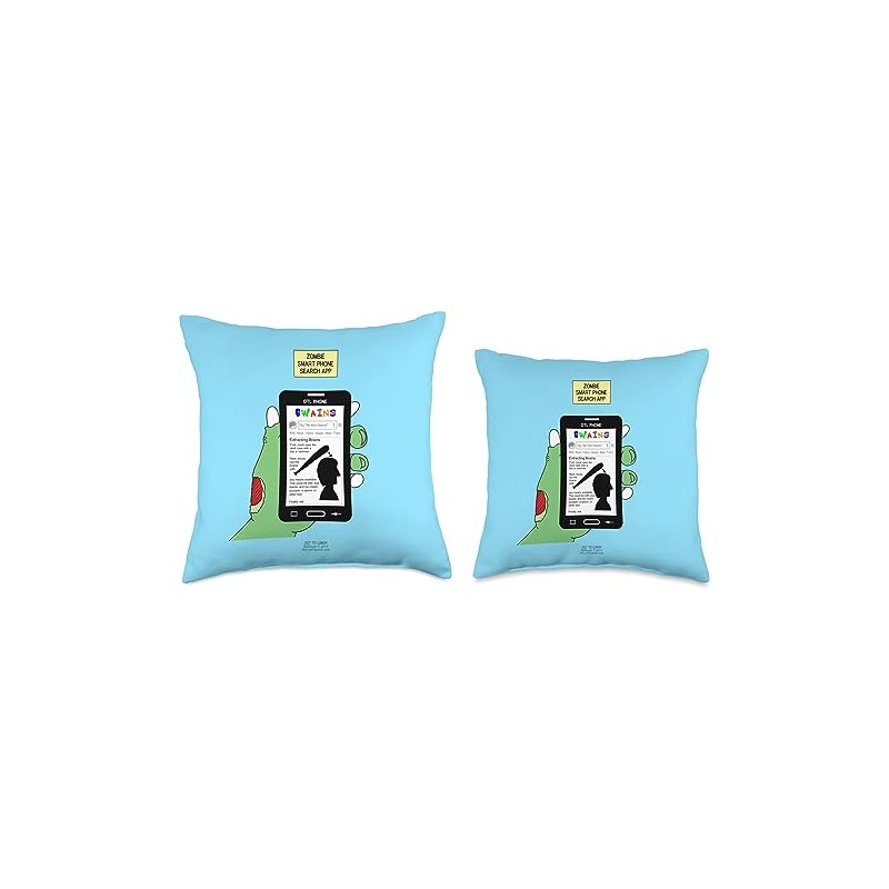 Out to Lunch Bwains-The Zombie Smart Phone Search App Throw Pillow, 18x18, Multicolor