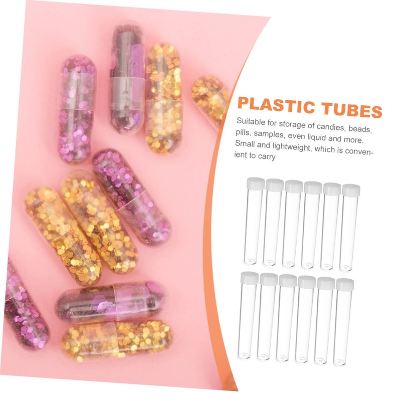 vial storage container Each of the tube bottle is suitable for dispensers, decorations, ornaments, etc.tubes You can use it to storage candy, mini beads, liquids and other small items.craft tubes clear This empty tube bottle is made of plastic material for durable and practical use