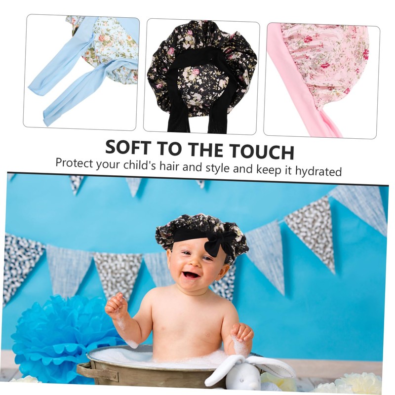 Outanaya 3pcs round hair cap big bonnet children satin bonnet silk bonnet for kids bonnets silk bonnet for sleeping kids Child Sleeping Hat elastic fabric breathable toddler baby hat