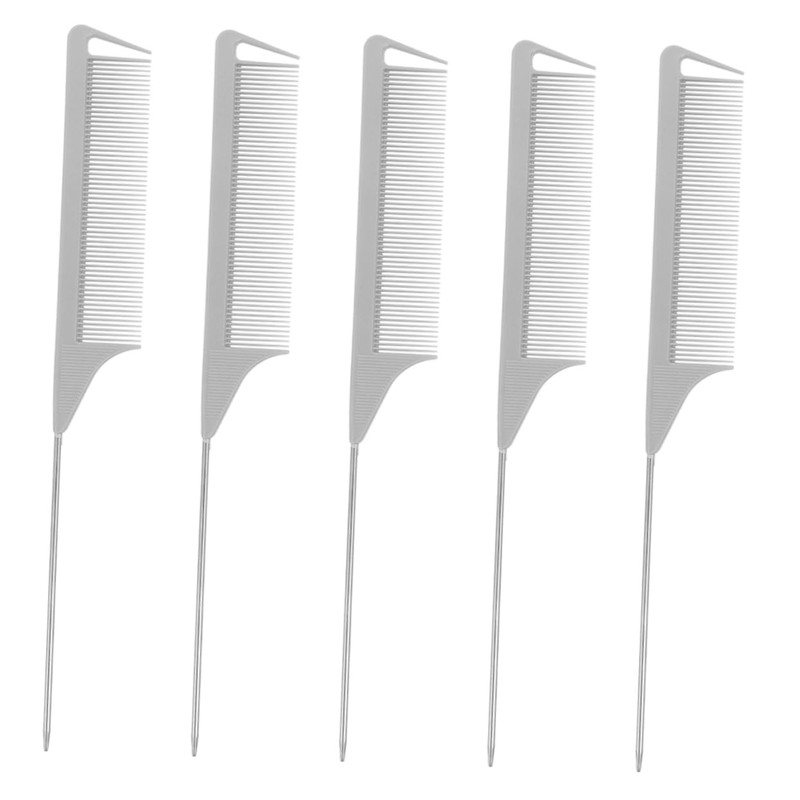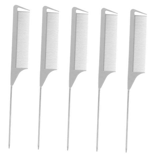 Outanaya 5pcs Hair Styling Combs Set Steel Pin Rat Tail Teasing Comb for Fine Hair Professional Hairdressing Tools for Salon and Home Use