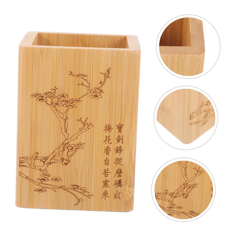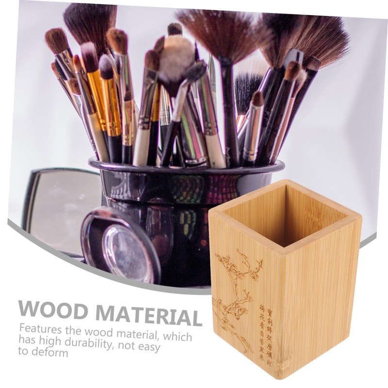 Outanaya Elegant Wooden Pen Holder Makeup Brush Cup Pencil Storage Holder Desk Utensil Organizer