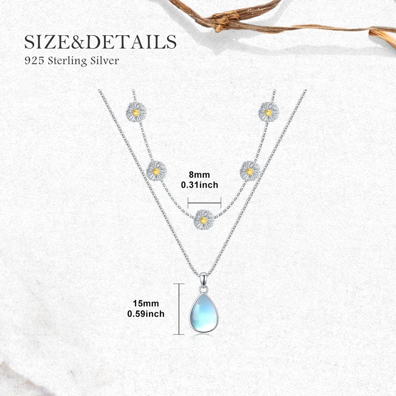 OUTANG Daisy Layered Necklace for Women 925 Sterling Silver Moonstone Daisy Flower Pendant Ladies Jewelry Gifts