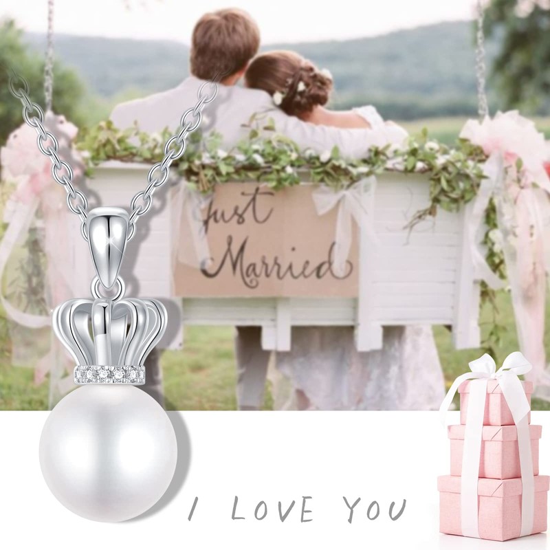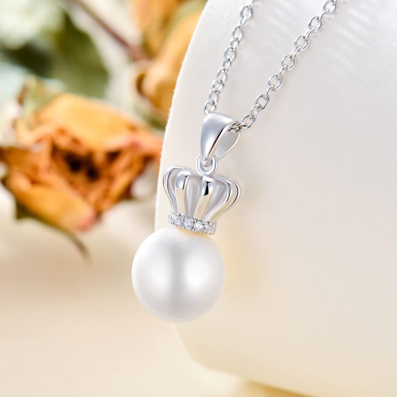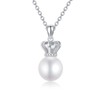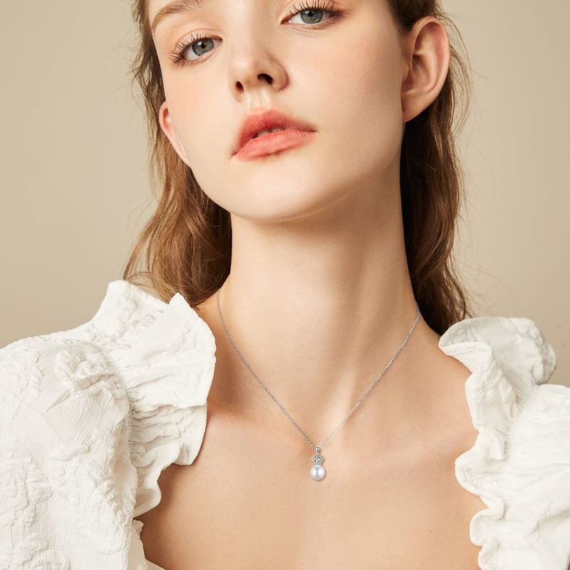 OUTANG Freshwater Cultured Pearl Pendant Necklace, White Pearl Crown Necklace Birthday Wedding Gift for Women Bride Sterling Silver (style 4)