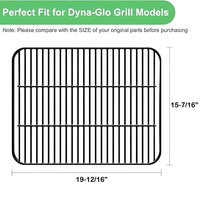 Complementing the stainless steel dyna glo heat plate is the porcelain coated dyna glo replacement grill grate, thoughtfully crafted with dimensions of 19.8 inches in length and 15.4 inches in width. This generously sized dyna gl grid provides an expansive canvas for your culinary creations, allowing you to experiment and delight your taste buds with a variety of dishes.