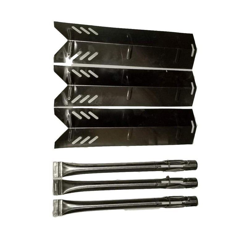 Outdoor Bazaar Set of Three Stainless Steel Replacement Heat Plates and Three Burners with electrodes for Uniflame, DynaGlo, Better Home and Garden and Backyard Grill Models