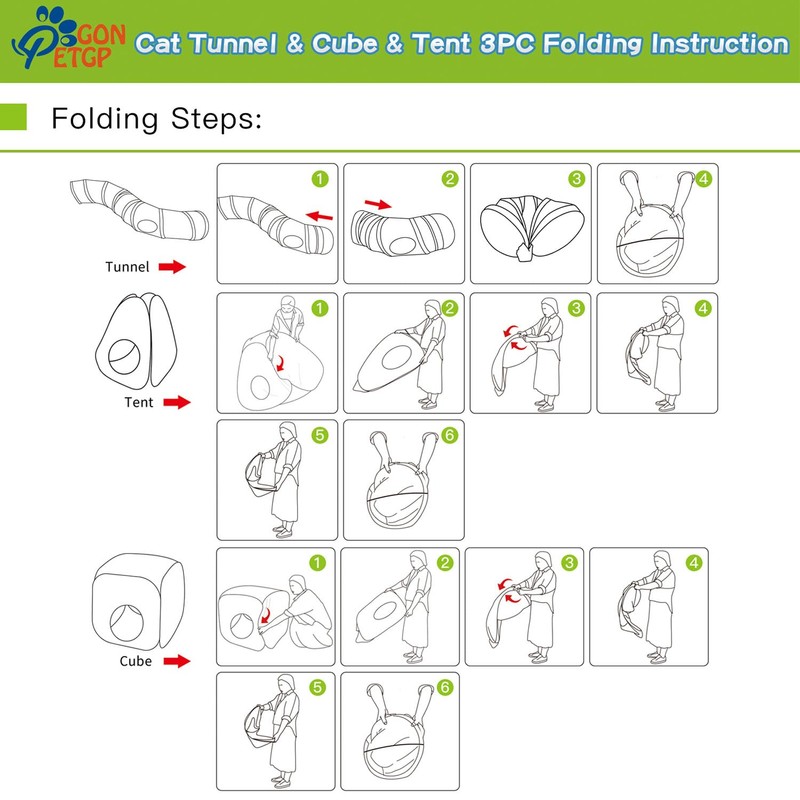 All in one design, one cat tunnel and two foldable cube and tent.
