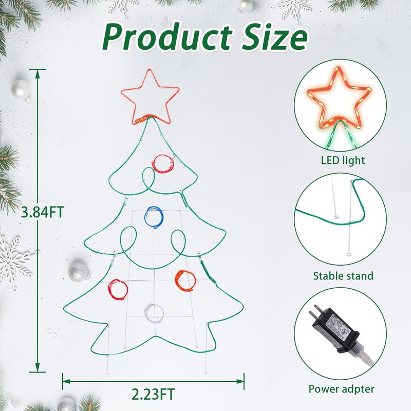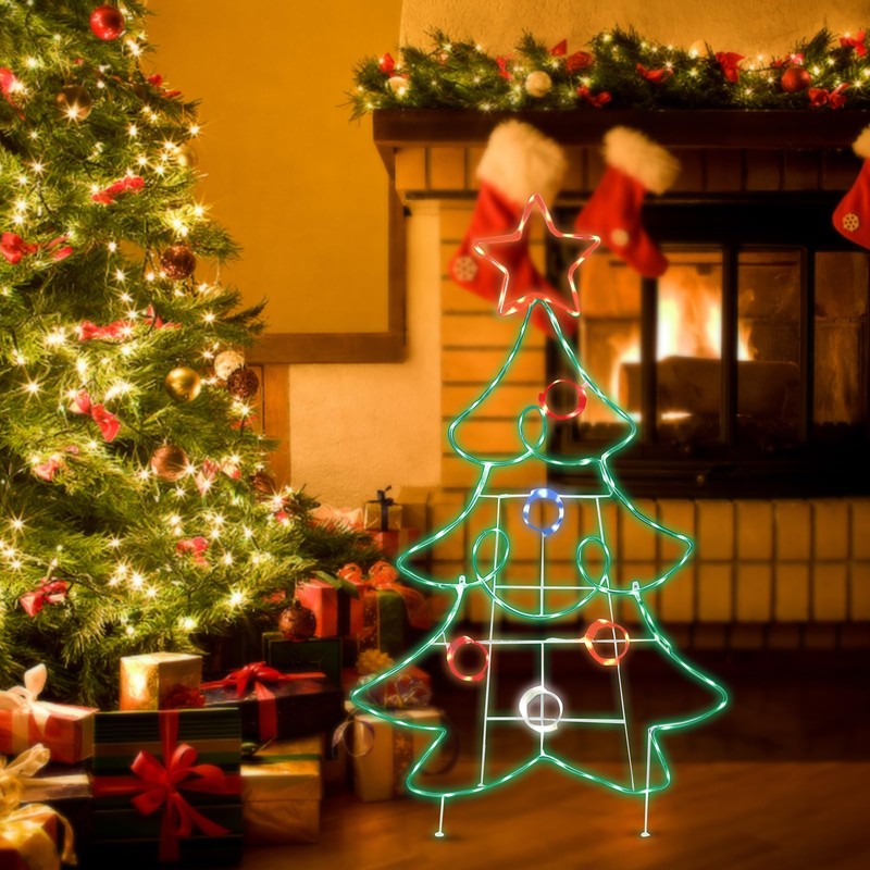 Outdoor Christmas Tree Decoration Christmas Lighted Xmas Tree with Star Neon Rope 126 LED Lights Decoration for Xmas Home Pathway Lawn Party Display