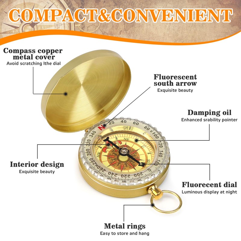 - High-quality materials: this compass is made of high-quality metal material, with a nostalgic design and a 360 degree rotating bezel for easy orientation. The portable brass compass is durable and works in any weather