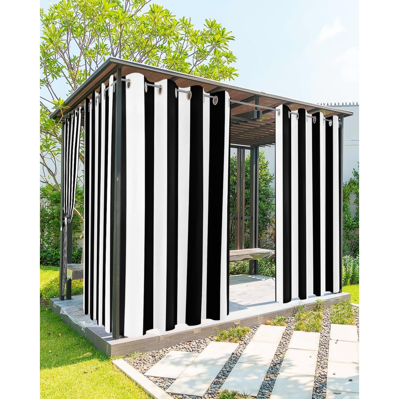 Outdoor Curtains for Patio Waterproof Black White Vertical Line Indoor/Outdoor Curtain Stripe Simple Privacy Curtain Sun Blocking Grommet Drapes for Pergolas Gazebo Porch Balcony 2 Panel 54x84