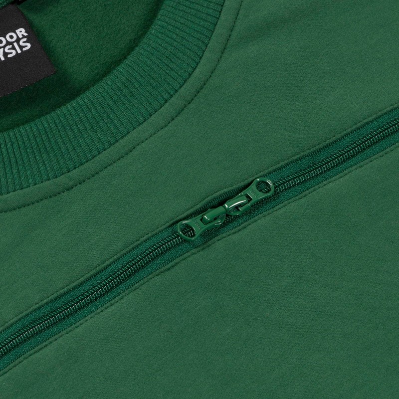 Outdoor Dialysis Crewneck | Zipper Access for AV Fistula, AV Graft, CVC & Port-a-Cath | Unisex, Relaxed Fit, Midweight (Green, Large)