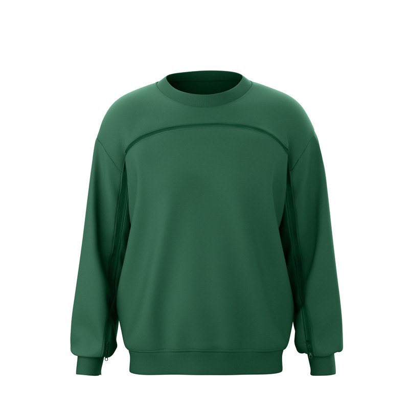 Outdoor Dialysis Crewneck | Zipper Access for AV Fistula, AV Graft, CVC & Port-a-Cath | Unisex, Relaxed Fit, Midweight (Green, Small)