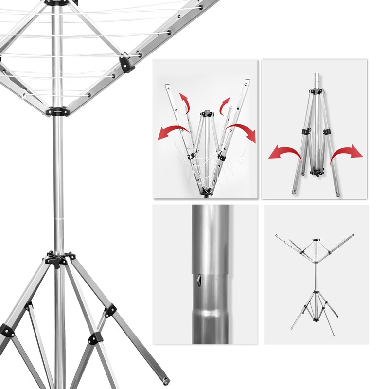 Outdoor Drying Rack with 4-arm Telescopic Aluminum Drying Rack Fixed with Gro...