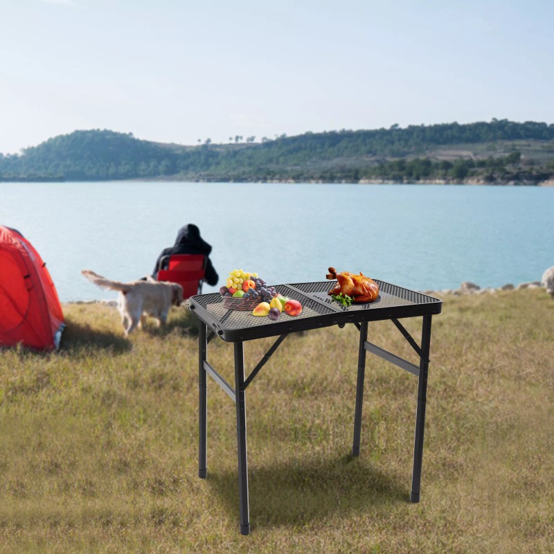 Table for Grill, Outdoor Picnic Folding Camping Table, Card Table Adjustable Height, Lightweight, Carry Handle for Outdoor, Beach, Indoor (Black)